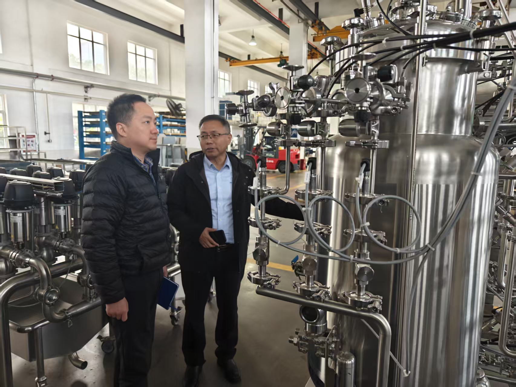 考察期間,王豐副縣長(zhǎng)一行深入企業(yè)生產(chǎn)車間、釀造實(shí)驗(yàn)室及產(chǎn)品展示區(qū),實(shí)地察看了生產(chǎn)線運(yùn)行、核心產(chǎn)品研發(fā)迭代、安全生產(chǎn)管控等情況。在生產(chǎn)車間,副縣長(zhǎng)仔細(xì)詢問了生產(chǎn)工藝、產(chǎn)能規(guī)模、市場(chǎng)銷路及原材料供應(yīng)等細(xì)節(jié),詳細(xì)了解企業(yè)在技術(shù)創(chuàng)新、質(zhì)量管控等方面的具體舉措;重點(diǎn)關(guān)注企業(yè)科研投入、人才團(tuán)隊(duì)建設(shè)及核心技術(shù)突破情況,對(duì)企業(yè)秉持“培養(yǎng)一流技術(shù)與服務(wù)專家,成為智能工業(yè)系統(tǒng)引領(lǐng)者” 的愿景,深耕智能工業(yè)領(lǐng)域的決心與成效給予充分肯定。每到一處,副縣長(zhǎng)都認(rèn)真傾聽企業(yè)介紹,細(xì)致詢問發(fā)展中遇到的難點(diǎn)堵點(diǎn)問題,現(xiàn)場(chǎng)協(xié)調(diào)相關(guān)部門回應(yīng)企業(yè)訴求。